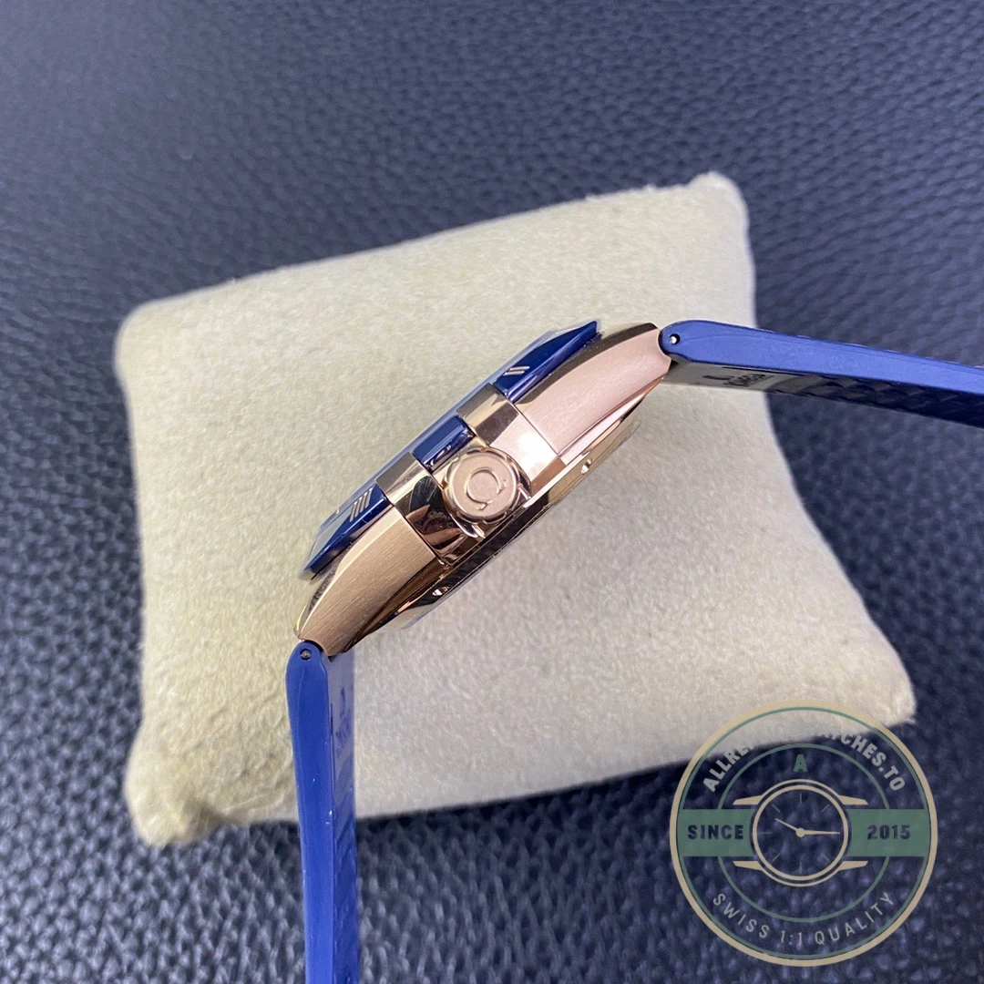 Attention to detail is evident throughout the construction. The stainless steel construction ensures durability for daily wear while maintaining its appearance over time. The crown is signed with the Omega logo, and the clasp mechanism provides secure and comfortable fit on the wrist.