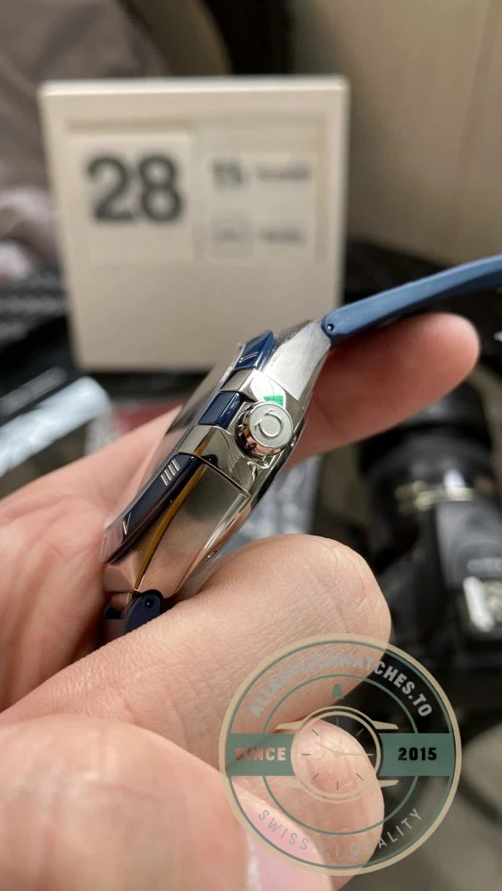 Attention to detail is evident throughout the construction. The stainless steel construction ensures durability for daily wear while maintaining its appearance over time. The crown is signed with the Omega logo, and the clasp mechanism provides secure and comfortable fit on the wrist.