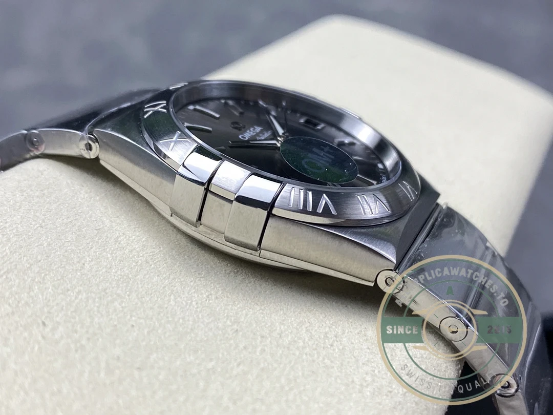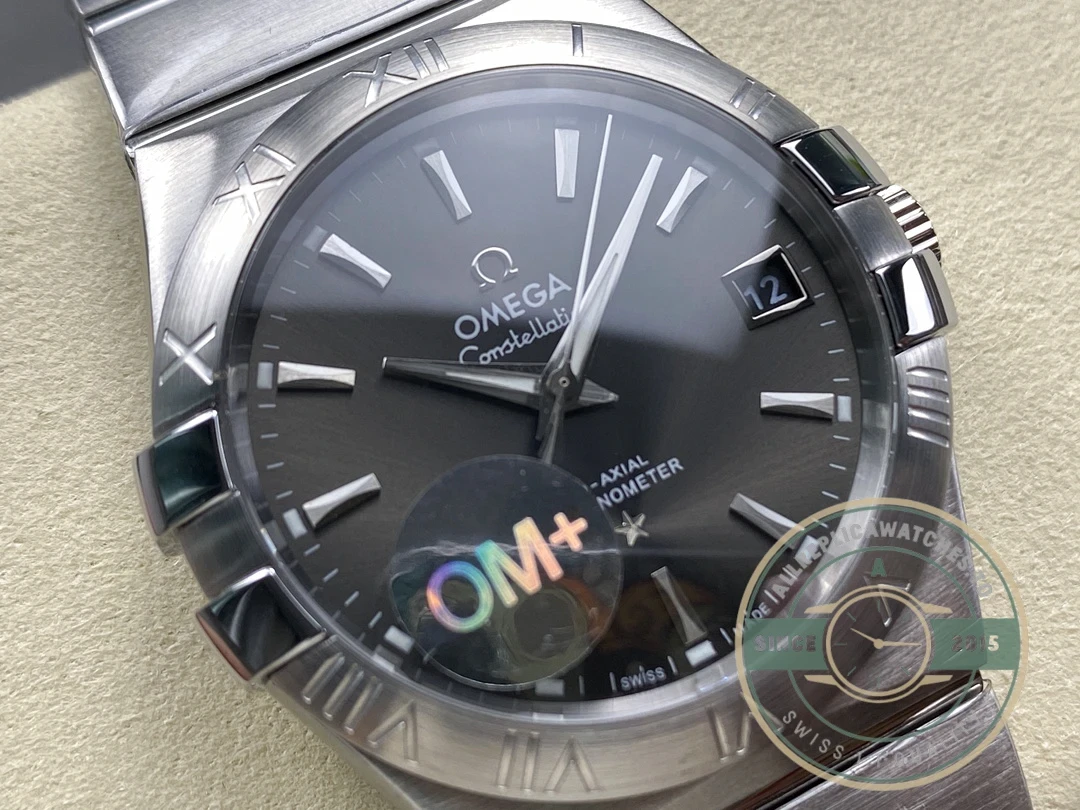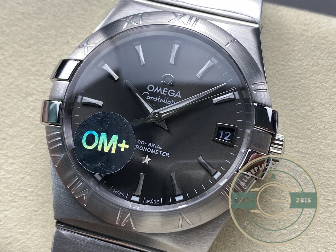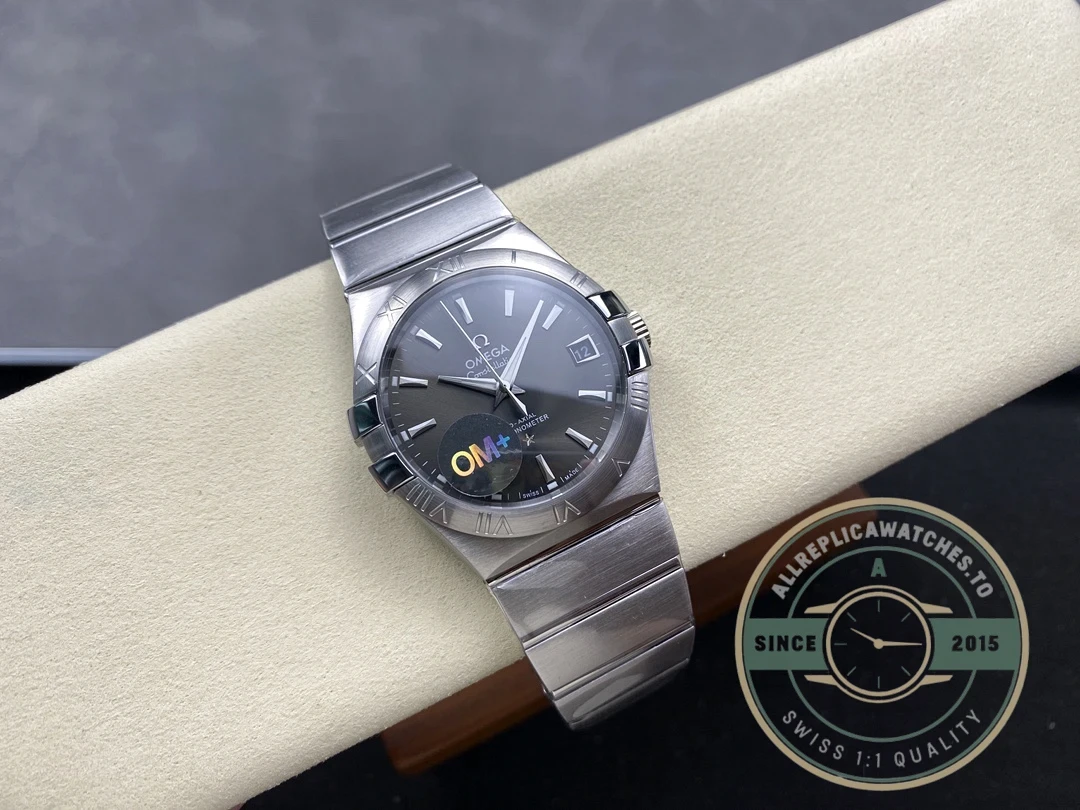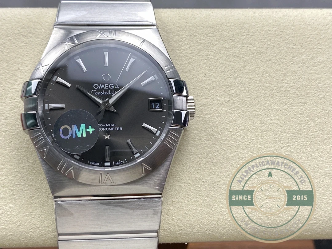 The Omega Constellation ref. 123.10.38.21.06.001 features a 38mm stainless steel case with a grey dial. This model is part of our Constellation collection. 38mm stainless steel case with grey dial. Co-Axial Master Chronometer, date display, sapphire crystal. Steel bracelet with folding clasp.
