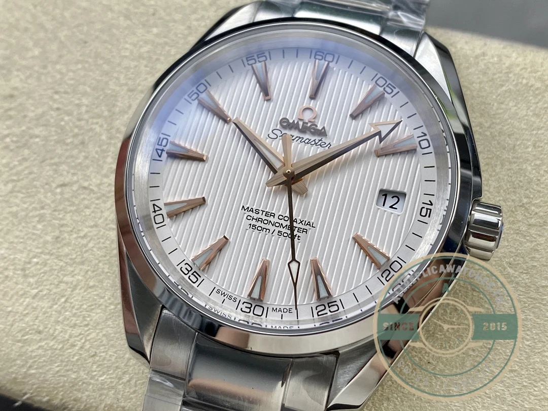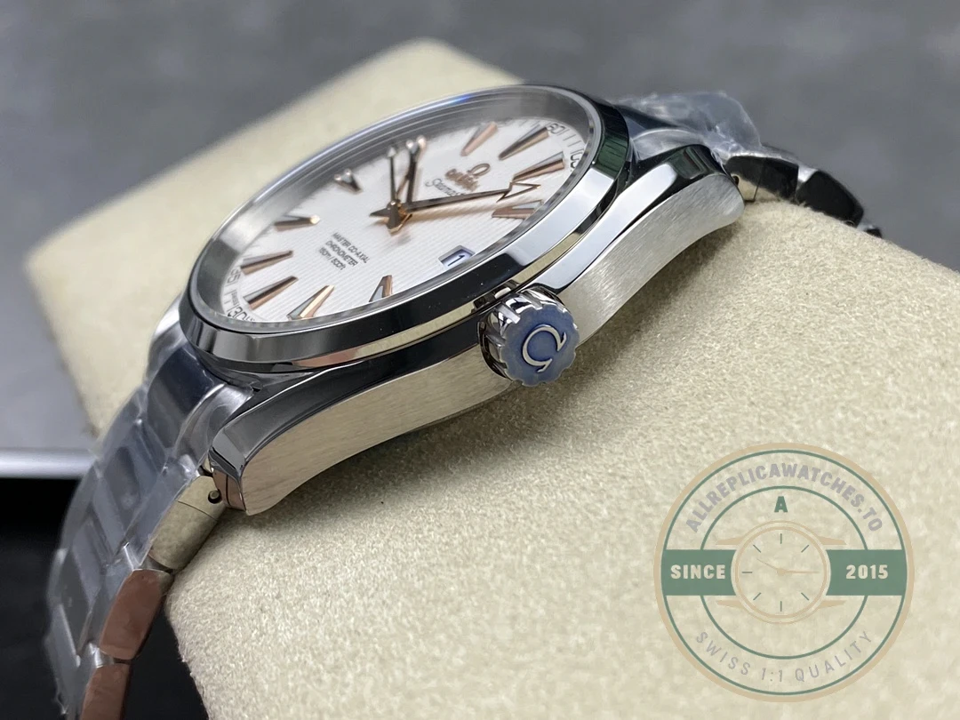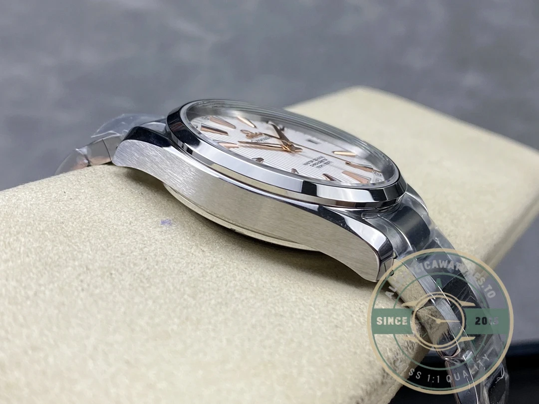 Attention to detail is evident throughout the construction. The stainless steel construction ensures durability for daily wear while maintaining its appearance over time. The crown is signed with the Omega logo, and the clasp mechanism provides secure and comfortable fit on the wrist.