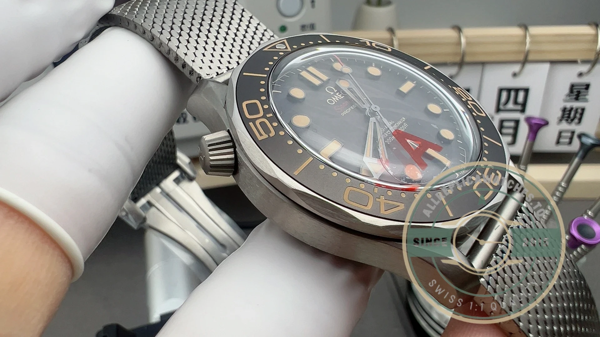 Attention to detail is evident throughout the construction. The stainless steel construction ensures durability for daily wear while maintaining its appearance over time. The crown is signed with the Omega logo, and the clasp mechanism provides secure and comfortable fit on the wrist.