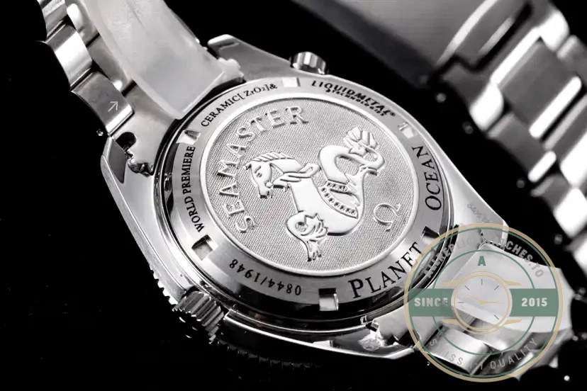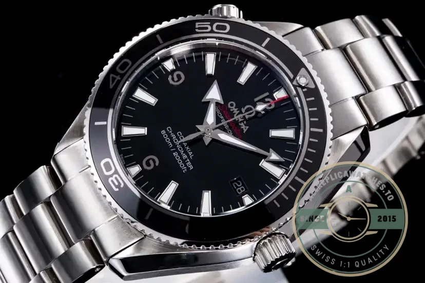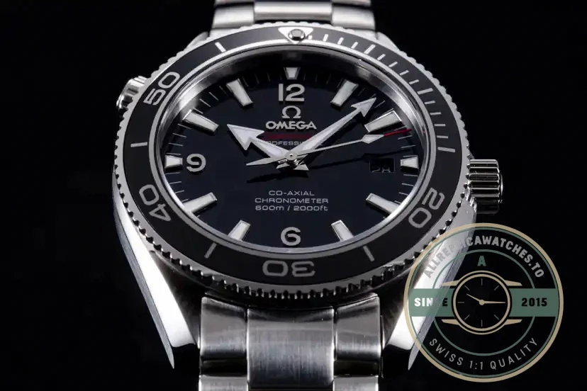 The Omega Planet Ocean ref. 222.30.42.20.01.001 features a stainless steel case. This model is part of our Seamaster collection. stainless steel case. Co-Axial movement, rotating bezel, screw-down crown, sapphire crystal. Steel bracelet with folding clasp.