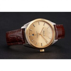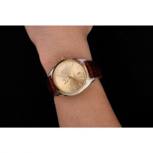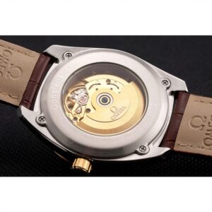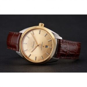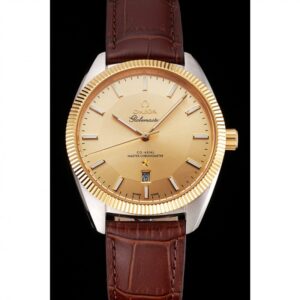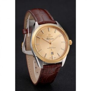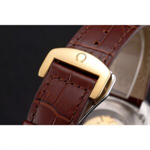 | Bracelet | Logo and Omega heat embossed brown crocodile leather strap with logo inscribed 18k yellow gold plated hook-clasp |