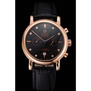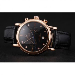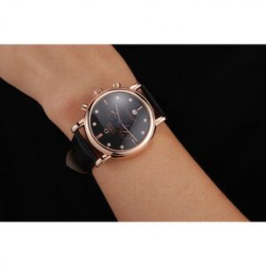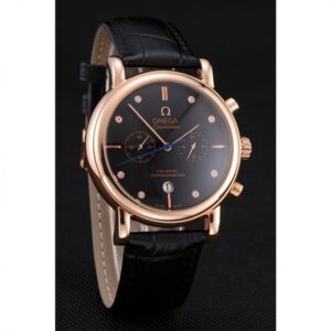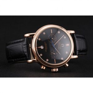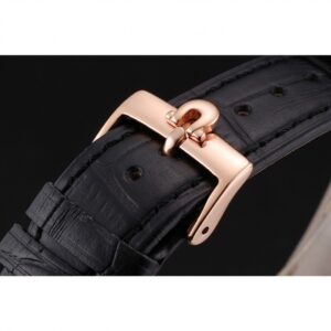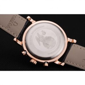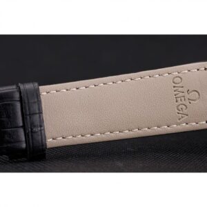 Omega and logo heat embossed blue crocodile leather strap with Omega logo carved 18k rose-gold plated hook-buckle clasp |