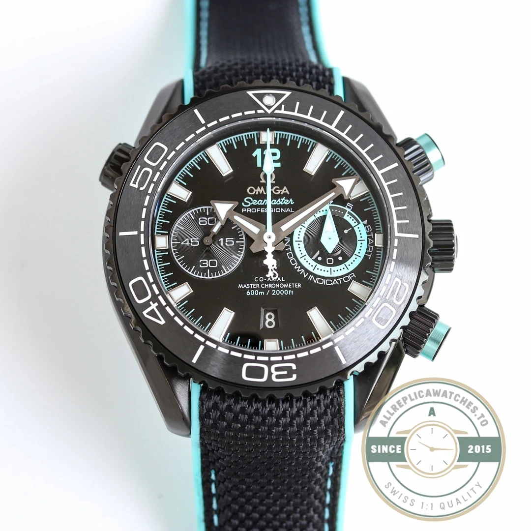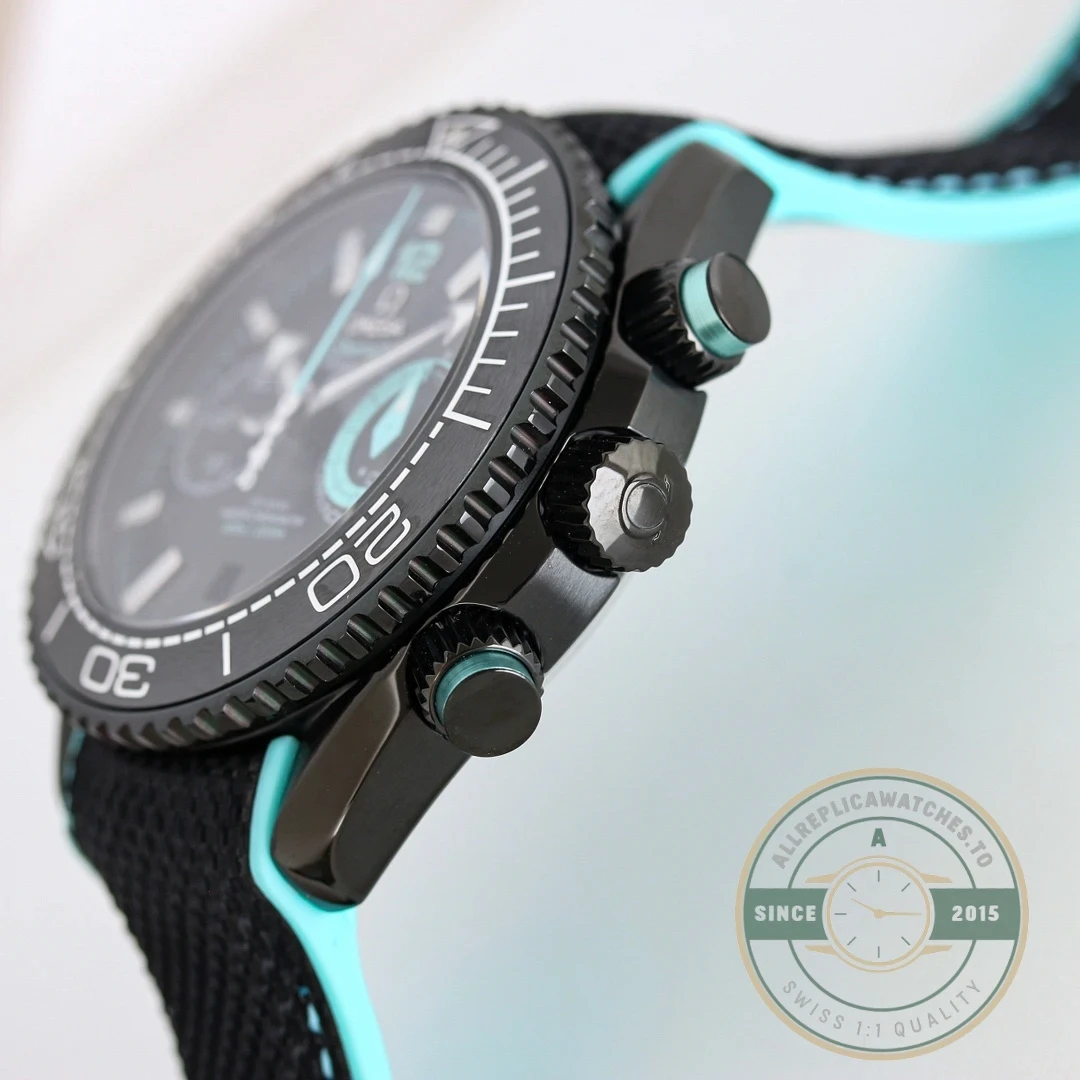 The black dial is engineered for maximum legibility, featuring bold luminous markers and chronograph subdials that stay clear in low-light and underwater conditions. Subtle Emirates-themed accents add exclusivity without disrupting the clean professional layout. A unidirectional dive bezel and screw-down crown reinforce the Seamaster’s tool-watch DNA, while the robust strap ensures comfort and security during active wear. This omega superclone is ideal for collectors who want a powerful diver with limited-edition appeal and unmistakable Seamaster identity.