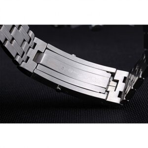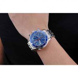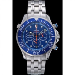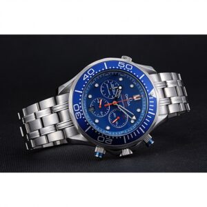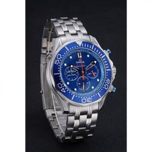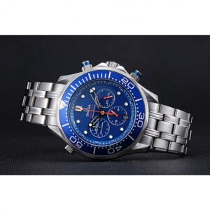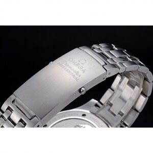 Brushed stainless steel link bracelet with Omega Seamaster Professional inscribed push-release deployment clasp |