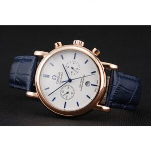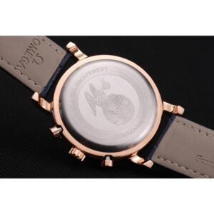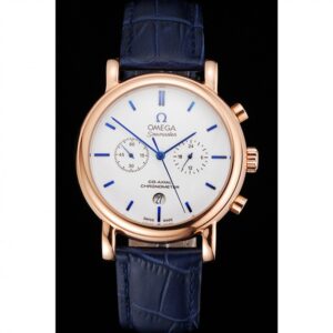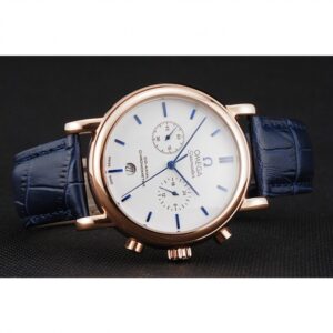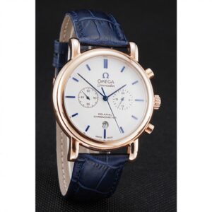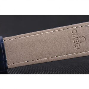 Brushed stainless steel cutwork crown with Omega logo plus an additional crown on the opposite top corner |