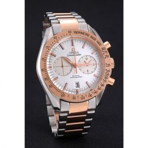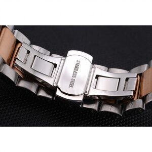 Brushed stainless steel and 18k rose-gold plated link bracelet with Omega logo push-release clasp |