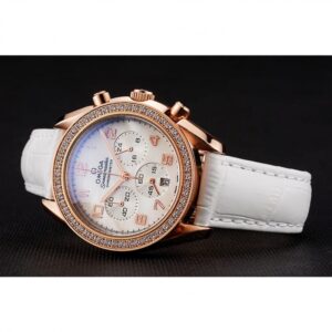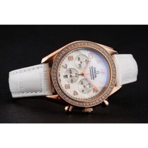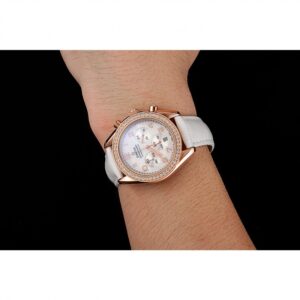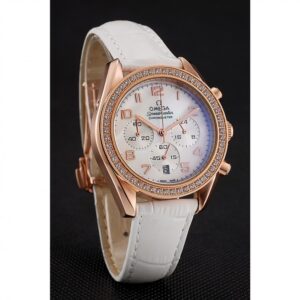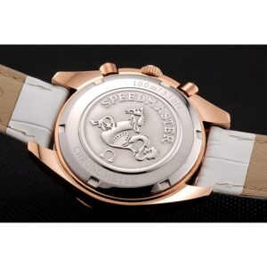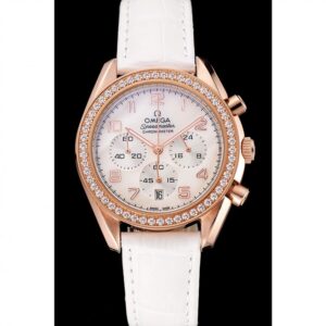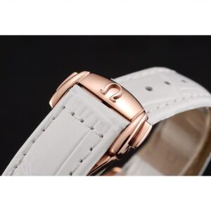 | Bracelet | White crocodile leather strap with Omega logo carved 18k rose-gold plated push-release hook clasp |