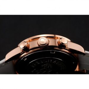 | Crown | Omega logo carved 18k rose-gold plated cutwork crown with a small round crown on either side of it |