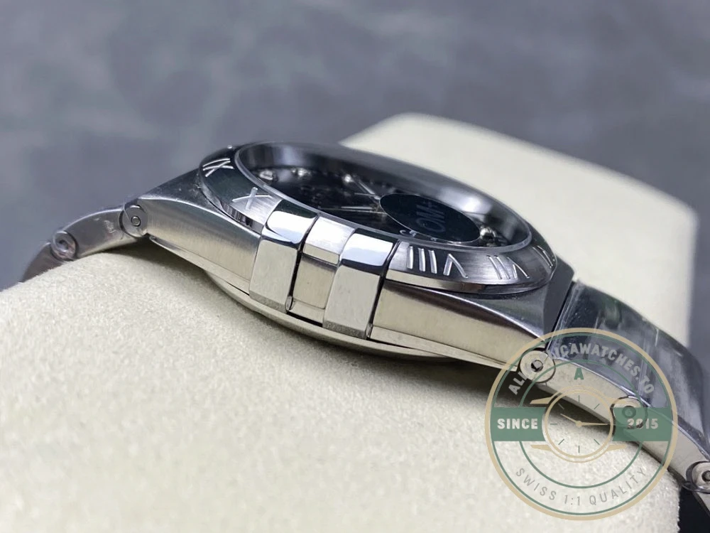 A sealed case structure helps keep dust and moisture away in everyday conditions. The silhouette follows the original blueprint while trimming any visual excess. Backed by our support team with clear communication from order to delivery. Power reserve is ample for workdays and weekend rotations alike. Reference 123.10.38.21.51.001 anchors this configuration, keeping bracelet, dial and indices cohesive. A sapphire-style crystal resists scuffs through busy days and travel. Applied markers and a clean handset keep legibility high in most light. A refined Omega Constellation knockoff for collectors who care about details, fit, finish and worry-free daily wear. Proportions stay versatile, elegant at events and relaxed with casual fits. A confident take on an icon, blending timeless lines with everyday-ready durability. Inside is a high-grade clone movement with smooth sweep, giving you dependable timekeeping without the service anxiety. The bracelet sits comfortably on the wrist and balances the case for all-day wear.