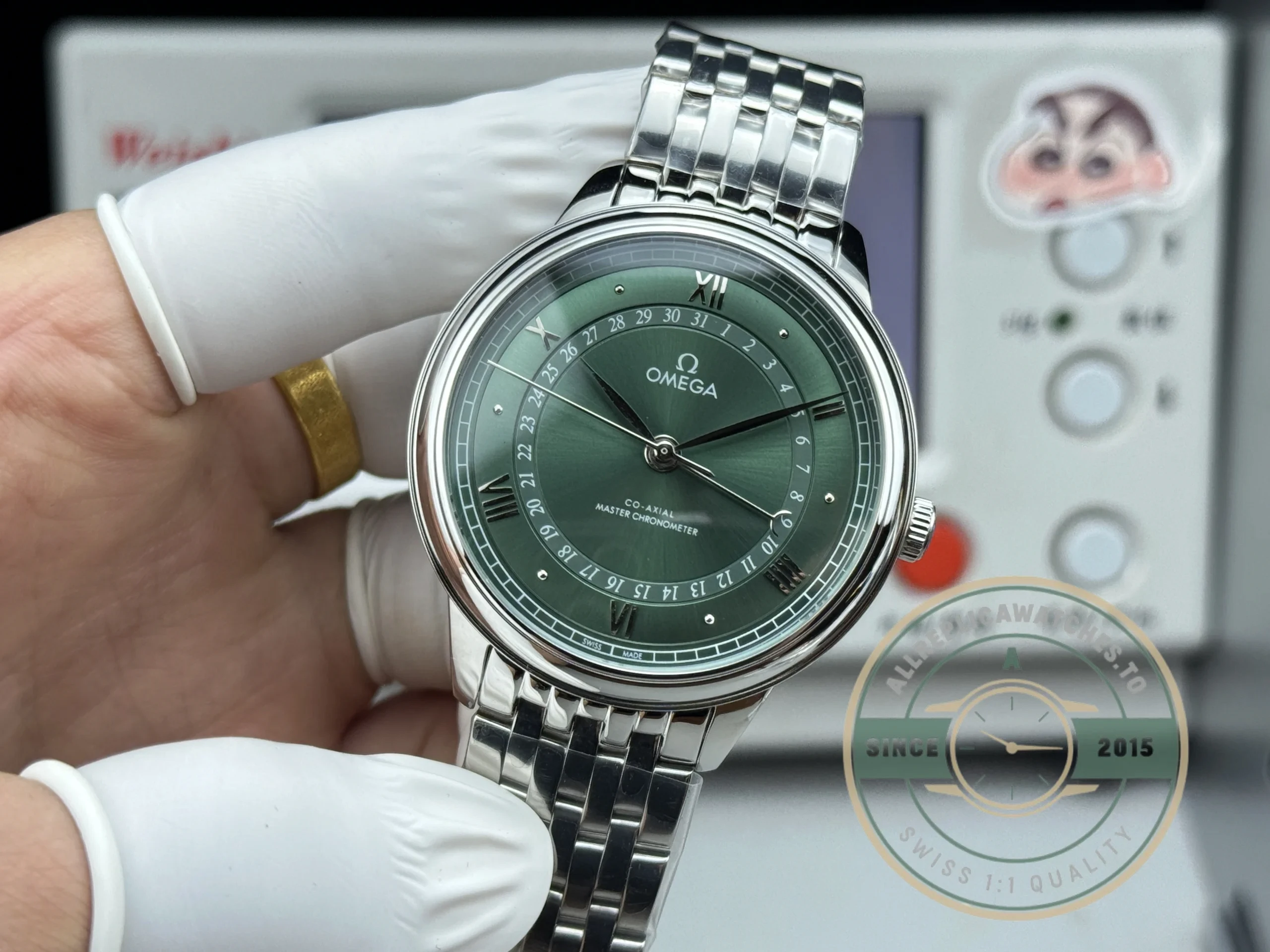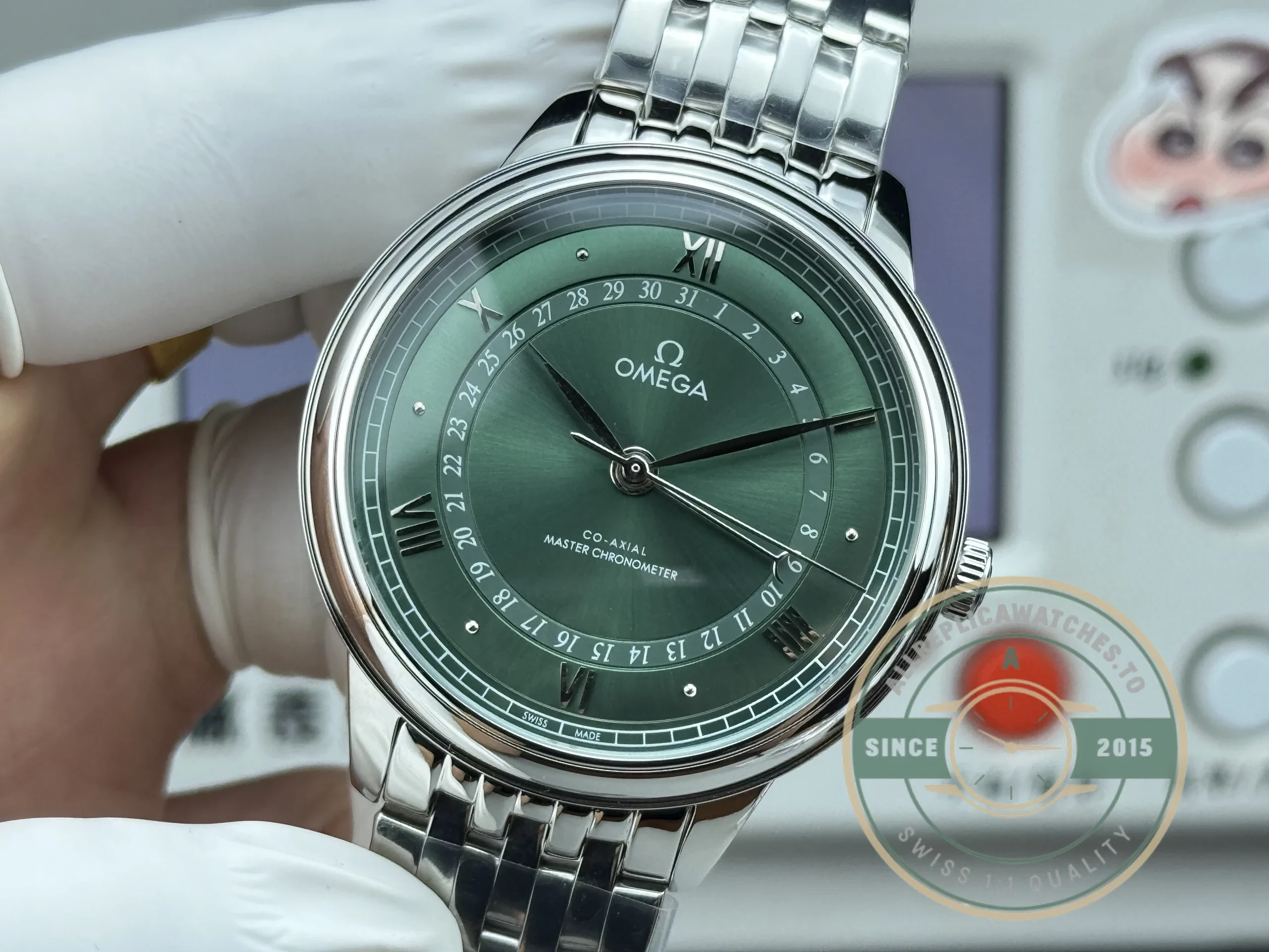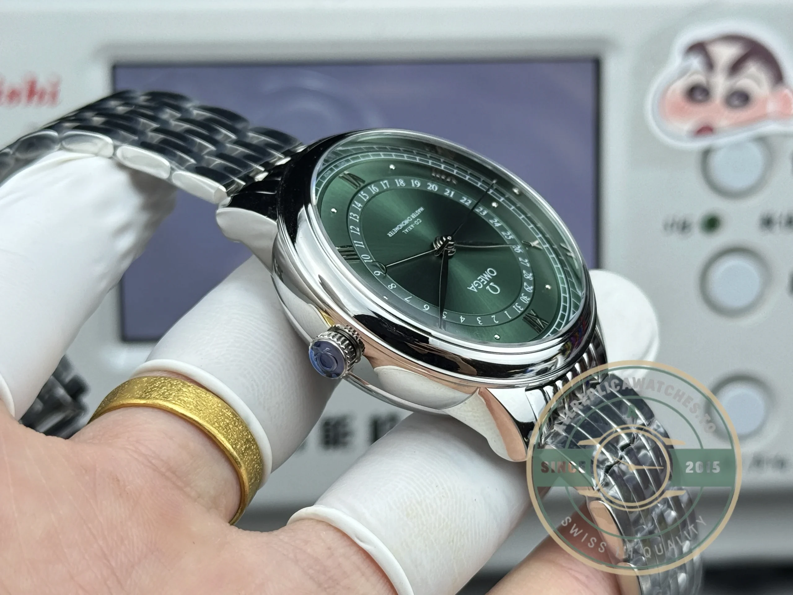 Superclone OMEGA De Ville Prestige 434.10.40.20.10.001 40mm Silver, Green Dial - Top-Tier Swiss Replica Watch
